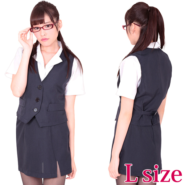 商品番号:b17495 カラー:ネイビー 種類:コスチューム/F0089NB 仕様:Lサイズ:B86〜94cm・W69〜77cm・H92〜100cm セット内容:ブラウス・スカート・ベスト