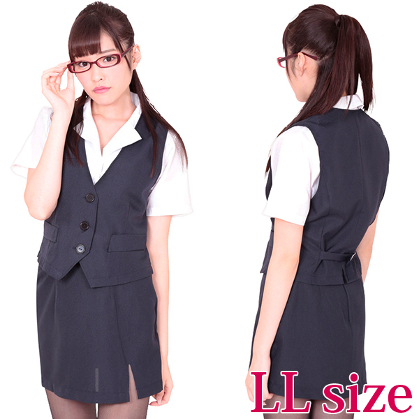 商品番号:b17521 カラー:ネイビー 種類:コスチューム/F3012NB 仕様:LL(XL)サイズ:B90〜98cm・W76〜86cm・H93〜103cm セット内容:ブラウス・スカート・ベスト