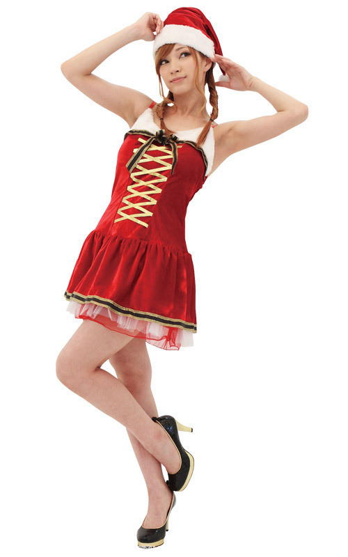 商品番号:b20984 カラー:レッド 種類:コスチューム/KA0145RE 仕様:Mサイズ:B78〜88cm・W58〜70cm・H87〜95cm セット内容:ワンピース・サンタ帽