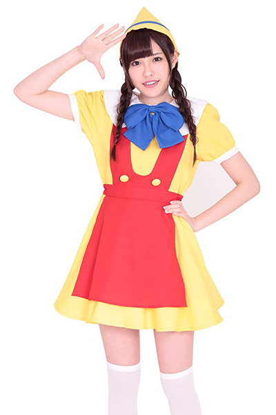 商品番号:b22176 カラー:イエロー 種類:コスチューム/A0583YE 仕様:Mサイズ:B78〜88cm・W58〜70cm・H87〜95cm セット内容:エプロン付ワンピース、ボレロ、リボン、帽子
