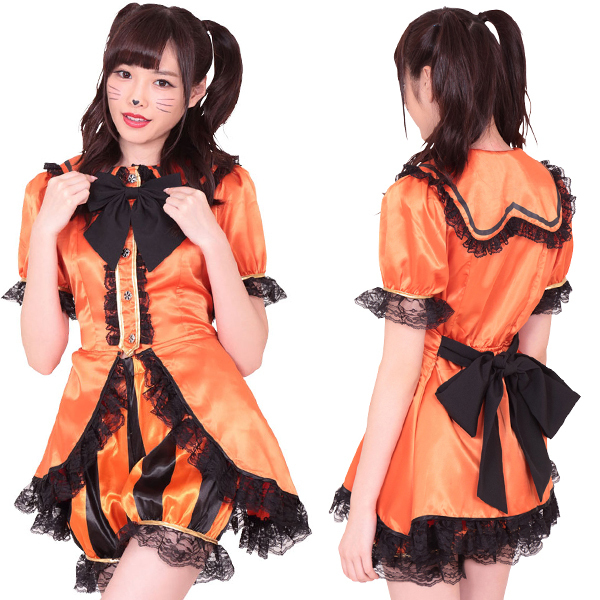 商品番号:b23242 カラー:オレンジ 種類:コスチューム/A0610OR 仕様:Mサイズ:B78〜88cm・W58〜70cm・H87〜95cm セット内容:トップス、パンツ、リボン