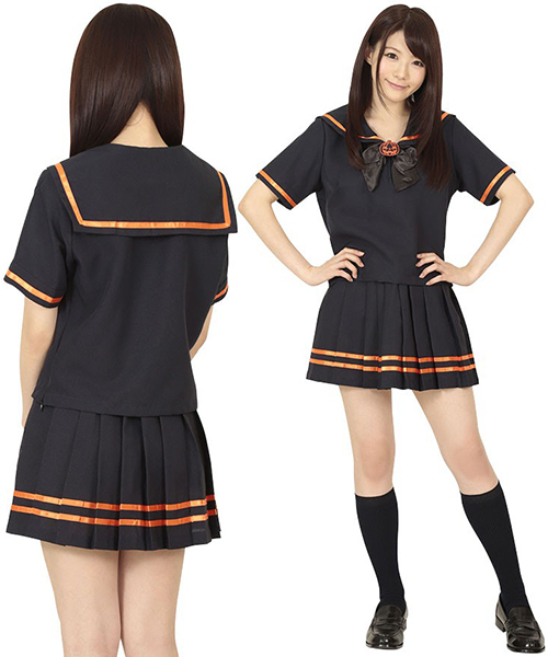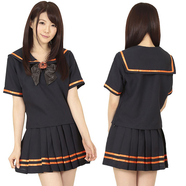 商品番号:b23243 カラー:ネイビー 種類:コスチューム/A0611NB 仕様:Mサイズ:B78〜88cm・W58〜70cm・H87〜95cm セット内容:トップス、スカート、リボン(ワッペン付き)
