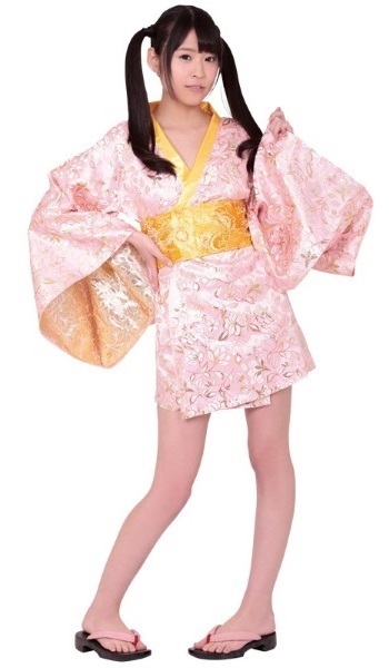 商品番号:b24252 カラー:ピンク 種類:コスチューム/KA0209PI 仕様:Mサイズ:B78〜88cm・W58〜70cm H87〜95cm セット内容:着物、作り帯 素材:ポリエステル100%