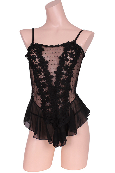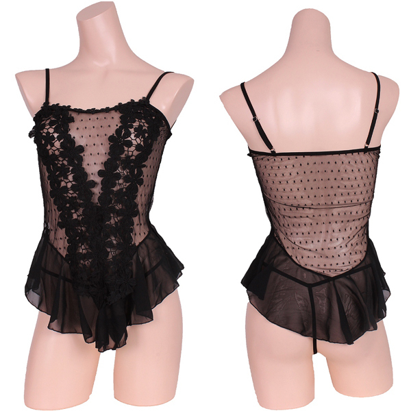 商品番号:b26935 カラー:ブラック 種類:ランジェリー/Z0354 仕様:Mサイズ:B78〜88cm・W58〜70cm・H87〜95cm セット内容:ベビードール、ショーツ 素材:ポリエステル、他