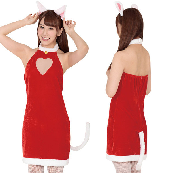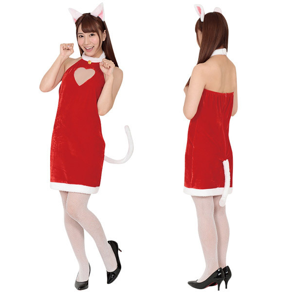 商品番号:b27690 カラー:レッド 種類:コスチューム/KA0254RE 仕様:Mサイズ:B78〜88cm・W58〜70cm・H87〜95cm セット内容:ワンピース、猫耳カチューシャ