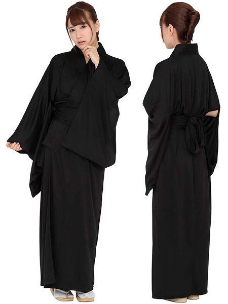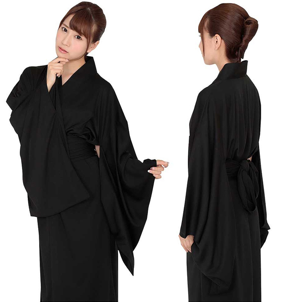 商品番号:b28879 カラー:ブラック 種類:コスチューム/A0683BK 仕様:Mサイズ:B78〜88cm・W58〜70cm・H87〜95cm セット内容:着物、帯紐