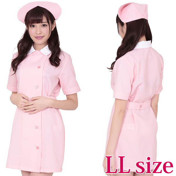 商品番号:b28890 カラー:ピンク 種類:コスチューム/KF3022PI 仕様:LL(XLサイズ):B90〜98cm・W76〜86cm・H93〜103cm セット内容:ナースワンピース、ナースキャップ、ピン2本