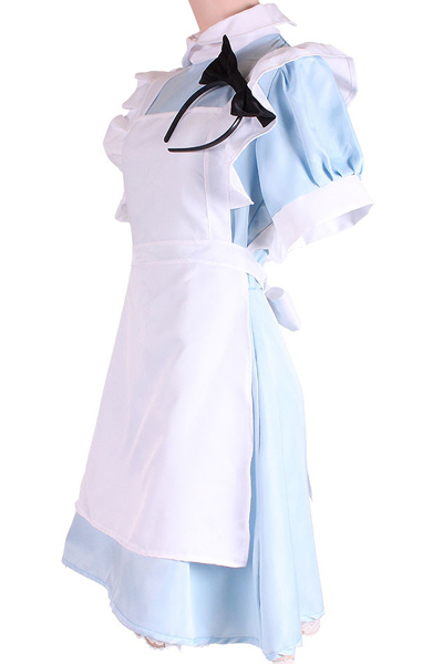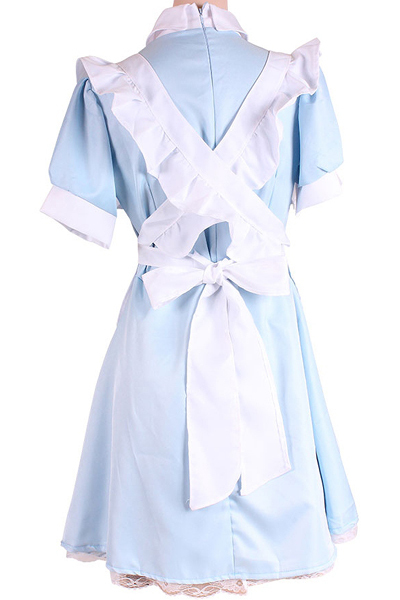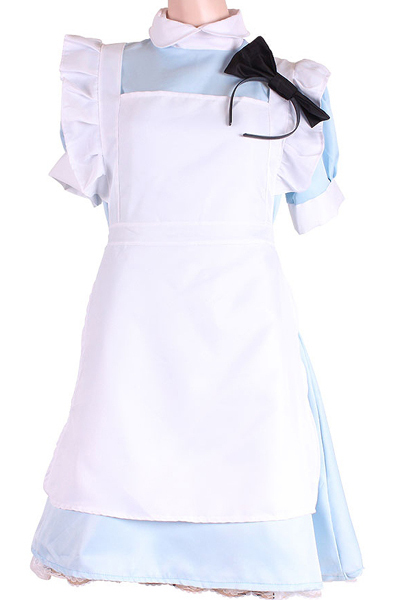 商品番号:b29922 カラー:サックス 種類:コスチューム/ZA0012SX 仕様:Mサイズ:B78〜88cm・W58〜70cm・H87〜95cm ワンピース(丈96cm・W82cm)・エプロン(丈:胸当てから65cm・リボン長さ90cm(左右とも)・カチューシャリボン幅18cm セット内容:メイドワンピース、エプロン、カチューシャ 素材:ポリエステル