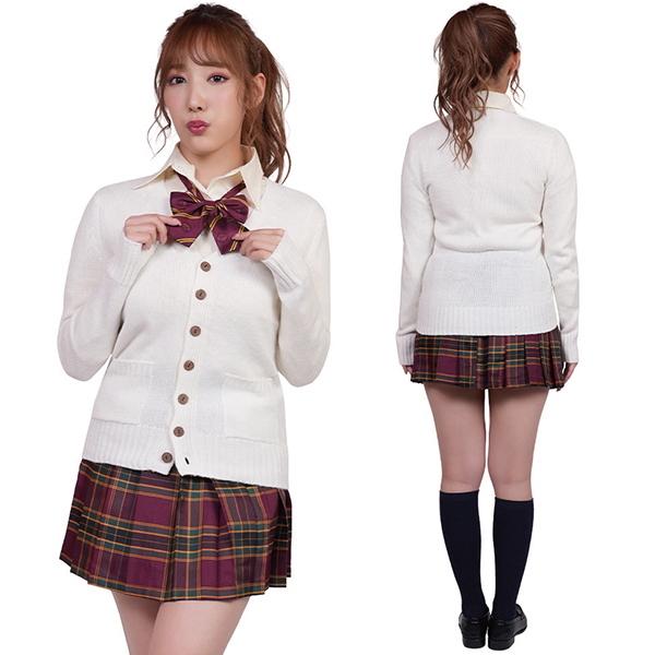 商品番号:b33783 カラー:-- 種類:コスチューム/KA0277WH 仕様:ブラウス:(B75〜85cm・着丈57cm・肩幅38cm・袖丈54cm)、カーディガン(着丈60cm・肩幅40cm・袖丈58cm)、スカート(W58〜64cm・丈38cm) セット内容:ブラウス、プリーツスカート、カーディガン、リボンタイ