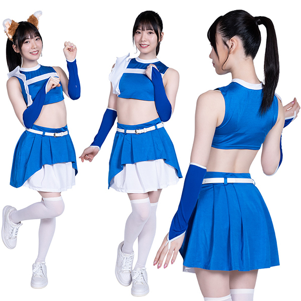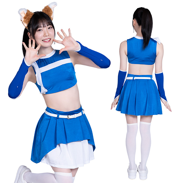 商品番号:b34760 カラー:ブルー 種類:コスチューム/A0713BL 仕様:トップス 着丈:24cm・肩幅37cm・B78〜88cm・W58〜70cm・スカート総丈39cm・アームホルダー長さ34cm・手首回り16cm・腕回り23cm セット内容:トップス、スカート、ベルト、アームホルダー