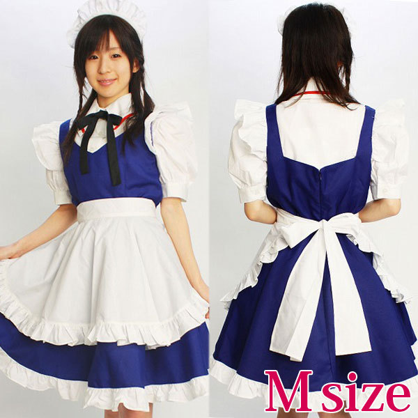 商品番号:cm0054 カラー:-- 種類:コスプレ衣装/NH2014M 仕様:Mサイズ:B〜90cm・W〜74cm・ブラウス着丈57cm(肩幅38〜42cm)・ワンピース着丈82cm・エプロン40cm・リボンタイ30cm セット内容:ブラウス(前ボタン留め)、ワンピース(後ろファスナー、肩にフリル)、エプロン、リボンタイ(長さ調整可)、カチューシャ