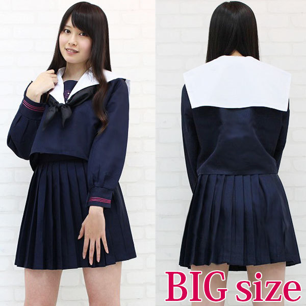 商品番号:cm0132 カラー:-- 種類:コスチューム/NK3015B 仕様:BIGサイズ:B114cm程度・W71〜89cm 丈:上着51cm(袖丈56cm、肩幅45cm)・スカート45cm・スカーフ120×93×93cm セット内容:上着(横ファスナー、襟・袖に3本ライン入り(赤色)、胸当てに校章入り(赤色)、胸ポケット縫い付け、襟当て(白色)取り外し可)・スカート(横ファスナー、アジャスター有り)・スカーフ・襟当て