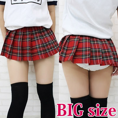 商品番号:cm0241 カラー:赤チェック 種類:コスチューム/NH3003B 仕様:BIGサイズ:W〜86cm 丈:スカート27cm セット内容:スカート(横ファスナー、ボタン留め、ウェスト一部ゴム入り)