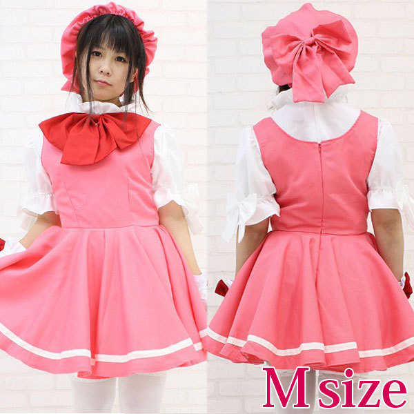 商品番号:cm0277 カラー:ピンク/白 種類:コスプレ衣装/NH2035M 仕様:Mサイズ:B〜82cm・W63〜70cm 丈:シャツ56cm(袖24cm、肩幅40cm)・ワンピース74cm・パニエ46cm・帽子〜90cm セット内容:帽子・シャツ(リボンタイ付き、背面ファスナー)・ワンピース・パニエ・手袋・手袋止め