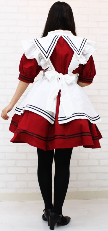 商品番号:cm0364 カラー:エンジ 種類:コスチューム/NH1018B 仕様:BIGサイズ:B92〜102cm・W90〜102cm 丈:ワンピース89cm(肩幅41cm、袖丈31cm、袖口39cm)・エプロン85cm セット内容:ワンピース(ウエストゴム入り、後ろファスナー、前飾りボタン付き・襟付き)・エプロン(前飾りボタン付き)・カチューシャ