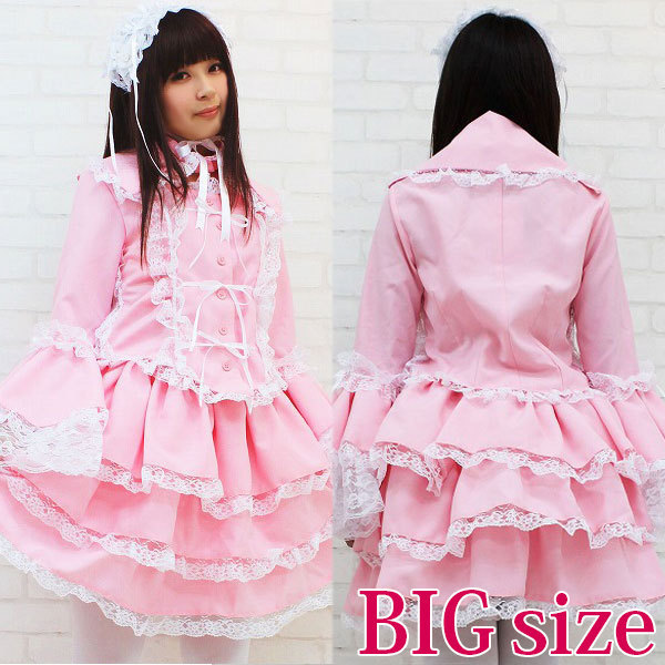 商品番号:cm0461 カラー:ピンク 種類:コスチューム/NH1015B 仕様:BIGサイズ:B〜100cm・W72〜120cm 丈:上着52cm(袖丈65cm・肩幅40cm)・スカート49cm 付け襟(首回り)43cm セット内容:上着(前ボタン)・スカート(ウエスト部分ゴム、スカート3枚仕立て、裏地付き、チュールパニエ付き)・付け衿(ボタンにて着脱可)・ヘッドドレス