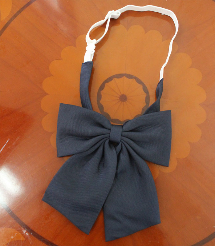 商品番号:cm0588 カラー:ネイビー 種類:コスチューム/NY3025NV 仕様:フリーサイズ 本体:首周り長さ38〜50cm(ゴム最大86cm) セット内容:スクールリボン単品(白い留め具、ゴム紐で長さ調整可)