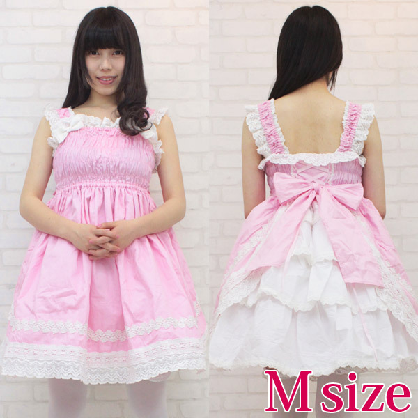 商品番号:cm0607 カラー:ピンク 種類:コスチューム/NK1006M 仕様:Mサイズ:B62〜92cm・W62〜102cm 丈:ジャンパースカート83cm セット内容:ジャンパースカート(横ファスナー、後ろ編み上げ、バストからウエスト部分シャーリングあり、肩紐ゴム入り、スカート部分裏地有り)