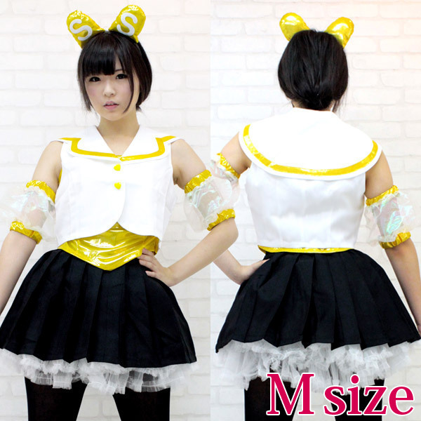 商品番号:cm0715 カラー:イエロー 種類:コスプレ衣装/NH2058M 仕様:Mサイズ:B75〜88cm・W58〜72cm 丈:上衣38cm・インナー前身頃丈:39cm・スカート35cm・パニエ37cm・アームカバー(腕囲)約34cm セット内容:上衣(前ボタン)・インナー(サイドファスナー)・スカート(ボタン留め、一部ゴム入り)・パニエ・アームカバー・カチューシャ