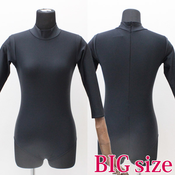 商品番号:cm0863 カラー:ブラック 種類:コスチューム/HB6026B 仕様:BIGサイズ:B74〜120cm・W68〜102cm・H72〜108cm 袖丈45cm・着丈66cm セット内容:七部袖丈ハイネックレオタード(後ろファスナー)