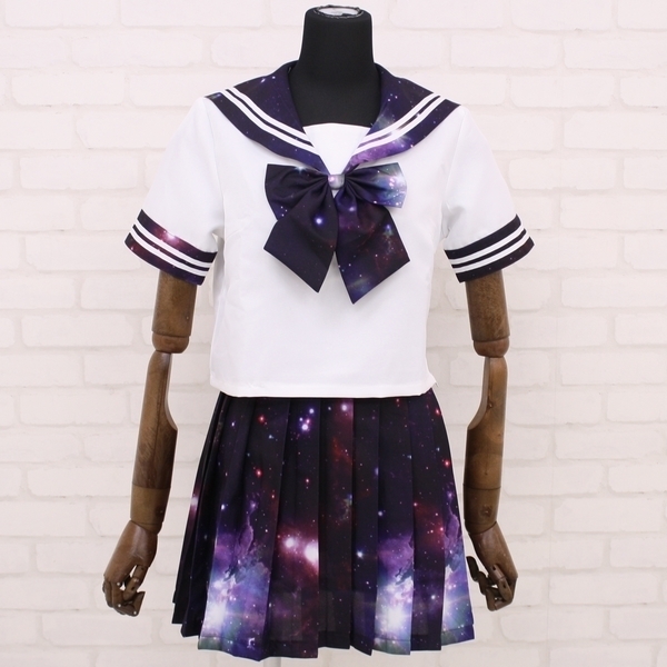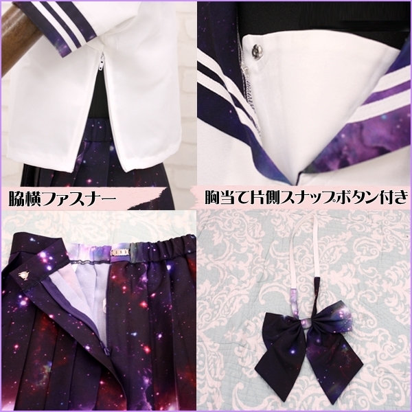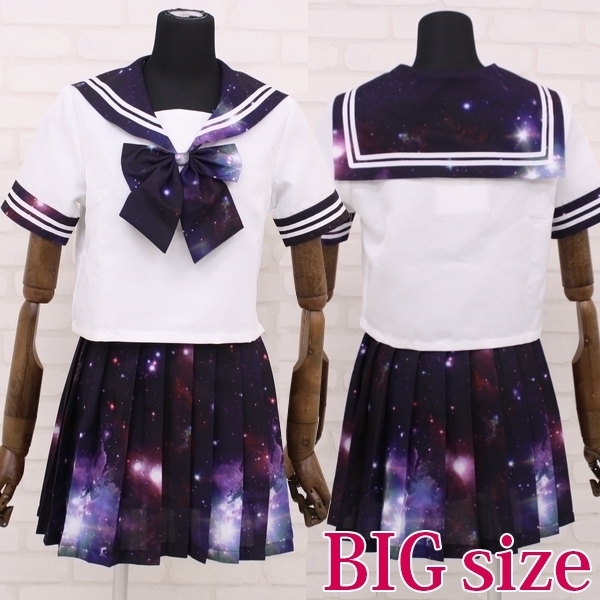 商品番号:cm1060 カラー:-- 種類:コスチューム/NH3076B 仕様:Bサイズ:B〜112cm・W〜85cm 上衣:肩幅45cm・着丈52cm・袖丈25cm スカート丈44cm セット内容:セーラー服上衣(横ファスナー、胸当て片側スナップボタン付き)、スカート(サイドファスナー、ウェスト一部ゴム入り、3段ホック留め)、リボン(取り外し可) 素材:ポリエステル100%