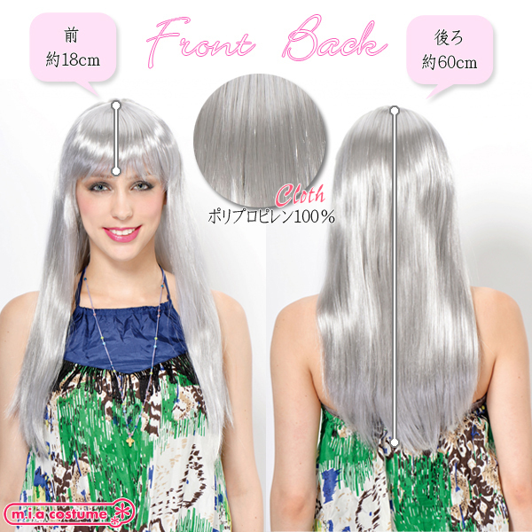商品番号:cm1194 カラー:シルバー 種類:コスチューム/CL849780 仕様:前髪18cm・後ろ髪60cm 素材:プロポリピレン100%