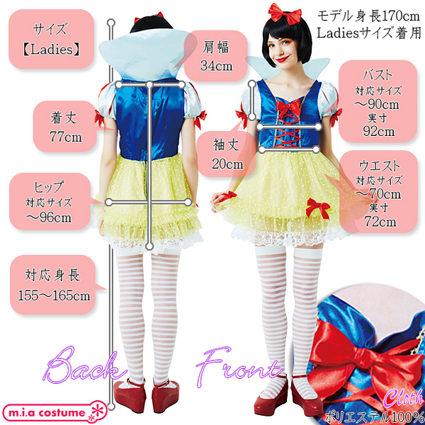 商品番号:cm1195 カラー:-- 種類:コスチューム/CL851837 仕様:Ladiesサイズ:B92cm・W72cm・H〜96cm・身長155〜165cm・着丈77cm・肩幅34cm・袖丈20cm セット内容:カチューシャ、ワンピース(背面ファスナー、スカート部分に裏地あり) 素材:ポリエステル100%