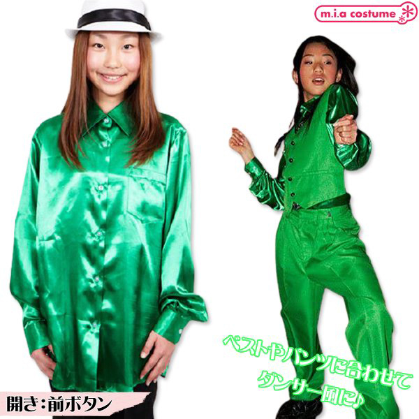 商品番号:cm1240 カラー:グリーン 種類:コスチューム/CL848509 130サイズ 仕様:130サイズ 対応サイズ:身長125〜135cm・B〜67cm・W〜58cm 実寸:着丈58cm セット内容:シャツ単品(前ボタン) 素材:ポリエステル100%