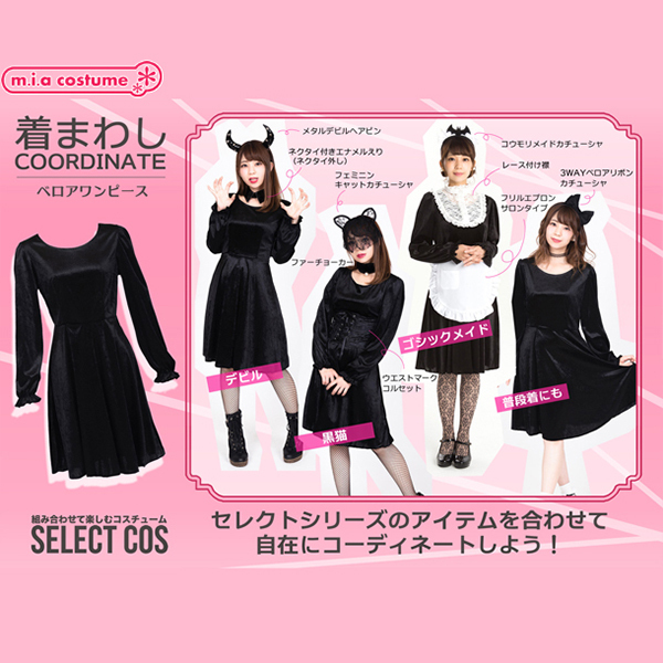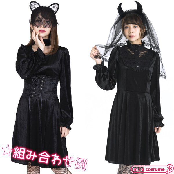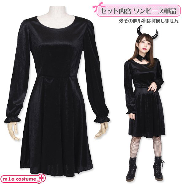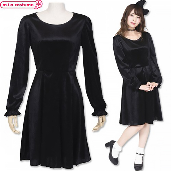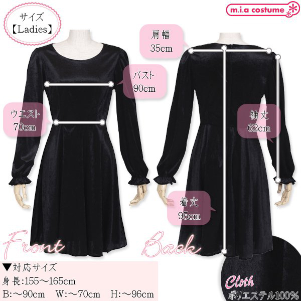 商品番号:cm1275 カラー:ブラック 種類:コスチューム/CL052923 仕様:対応サイズ:身長155〜165cm・B〜90cm・W〜70cm・H〜96cm 実寸:B90cm・W70cm・肩幅35cm・袖丈62cm・着丈95cm セット内容:ワンピース単品(背中心ファスナー) 素材:ポリエステル100% モデル身長155cm
