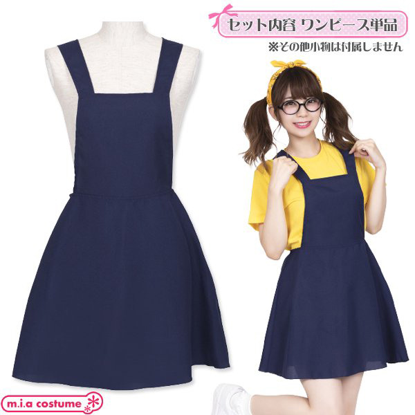 商品番号:cm1277 カラー:ネイビー 種類:コスチューム/CL052930 仕様:対応サイズ:身長155〜165cm・B〜90cm・W〜70cm・H〜96cm 実寸:着丈82cm セット内容:サロペット単品(左脇ファスナー) 素材:ポリエステル100% モデル身長155cm