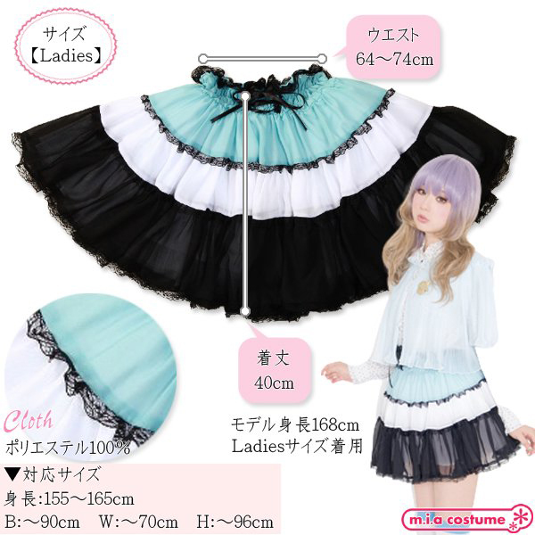 商品番号:cm1295 カラー:-- 種類:コスチューム/CL847588 仕様:対応サイズ:身長155〜165cm・B〜90cm・W〜70cm 実寸:W64〜74cm・着丈40cm セット内容:パニエ単品(ウエストゴム) 素材:ポリエステル100% モデル身長168cm