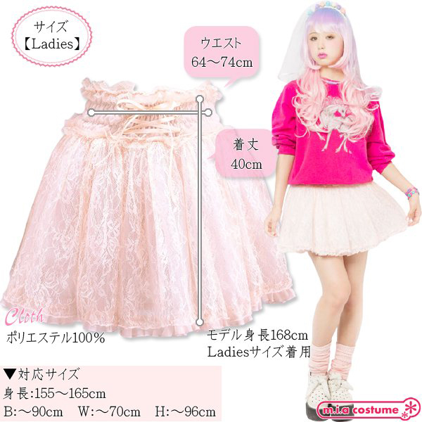 商品番号:cm1298 カラー:ベビーピンク 種類:コスチューム/CL852391 仕様:対応サイズ:身長155〜165cm・B〜90cm・W〜70cm・H〜96cm 実寸:W64〜74cm・着丈40cm セット内容:スカート単品(ウエストゴム) 素材:ポリエステル100% モデル身長168cm