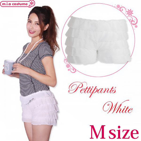 商品番号:cm1327 カラー:ホワイト 種類:コスチューム/CL869351 仕様:Mサイズ W52〜80cm・H87〜95cm・総丈22cm セット内容:ペチコートパンツ単品(ウエストゴム) 素材:ナイロン94%、ポリウレタン6% モデル身長162cm