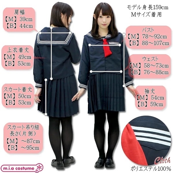 商品番号:cm1378 カラー:-- 種類:コスチューム/NK3110B 仕様:BIGサイズ:B88〜107cm・W76〜88cm・肩幅44cm・袖丈59cm・着丈(上衣53cm、スカート53cm)・吊り紐の長さ(片側)〜95cm セット内容:上衣(前開きボタン留め)、吊りスカート(横ファスナー、アジャスター調整可)、タイ 素材:ポリエステル100%