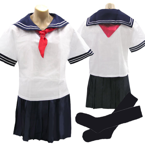 商品番号:e20499 カラー:-- 種類:コスチューム 仕様:フリーサイズ(メンズ) マネキン:胸囲97cm・胴回り75cm・腰周り95.5cm セット内容:ブラウス・リボン・スカート・ソックス パッケージ:35.5×25.0×5.5cm