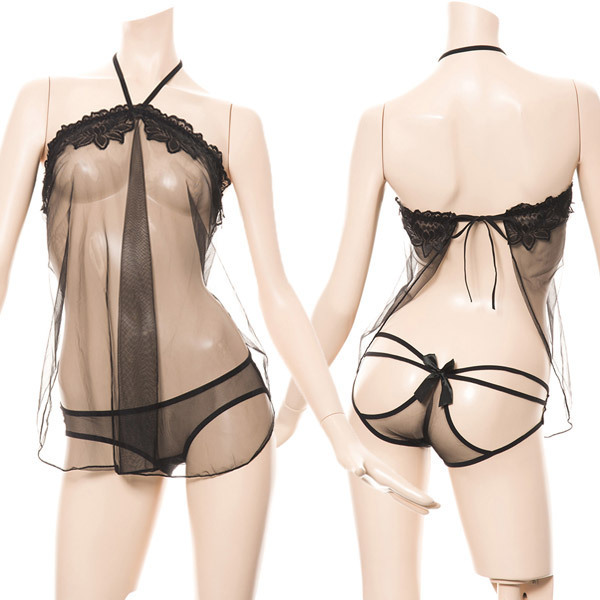 商品番号:e22924 カラー:ブラック 種類:ランジェリー/GB−311 仕様:Mサイズ(平置き):Bフリー・H27〜34cm 丈:前身頃56cm セット内容:ベビードール・ショーツ